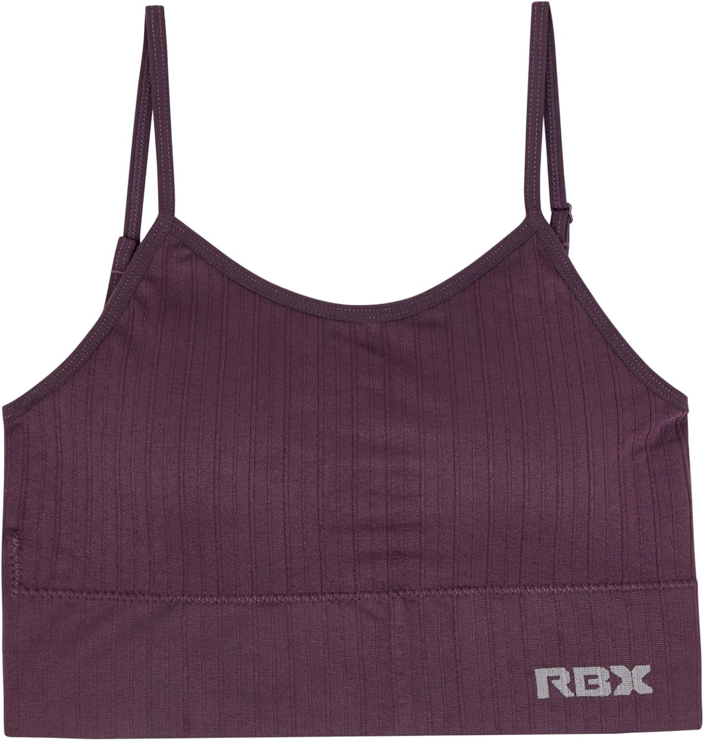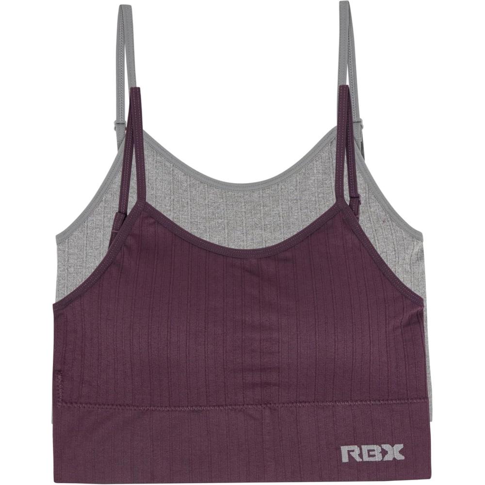 RBX Active Women’s Bralette Multipack Everyday Low Impact Yoga Lounge Bra 2-Pack(Ribbed Grey/Dark Purple)