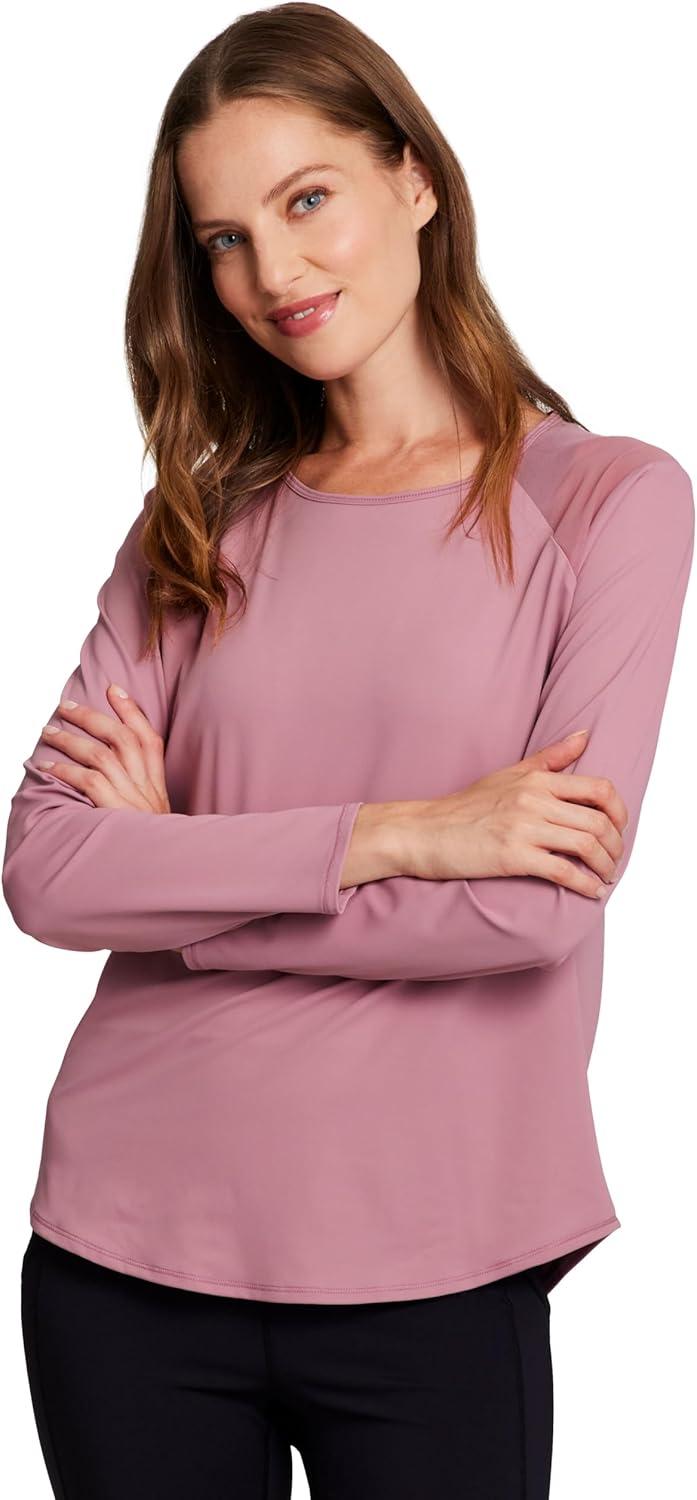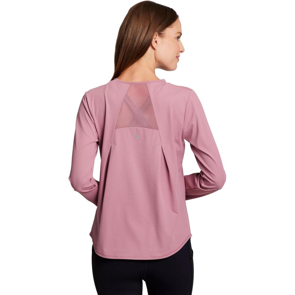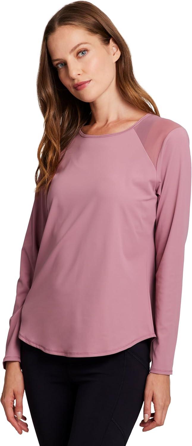 RBX Active Women’s Long Sleeve Ventilated Mesh Lightweight Running Workout Crewneck T-Shirt(Retro Pink)
