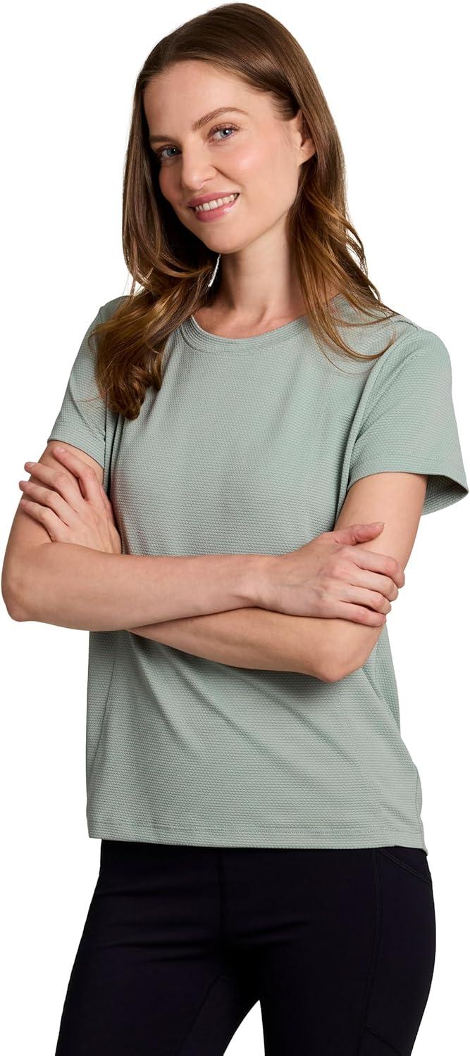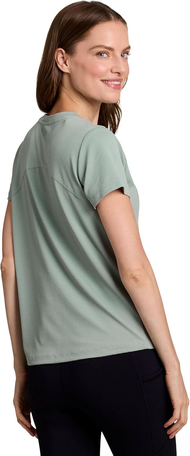 RBX Active Women’s Mesh Workout Top Short Sleeve Crewneck Quick Drying Running T-Shirt with Breathable Fabric(Light Oregano Green)