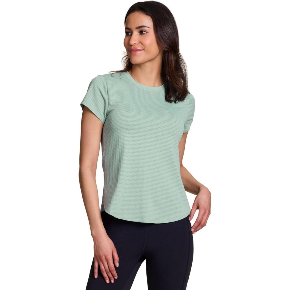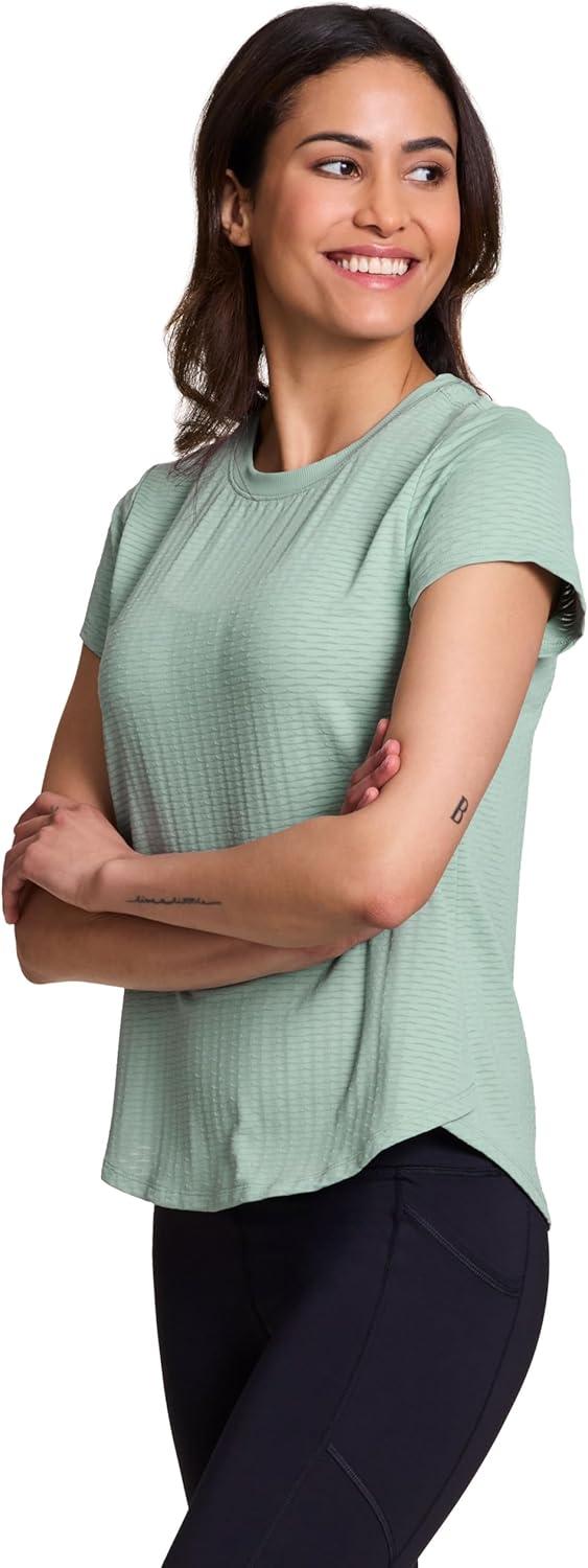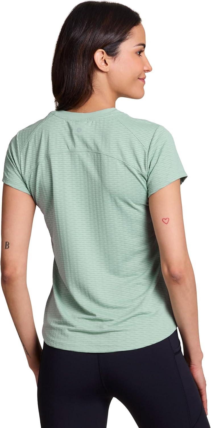 RBX Active Women’s Mesh Workout Top Short Sleeve Crewneck Quick Drying Running T-Shirt with Breathable Fabric(Texture Jade)