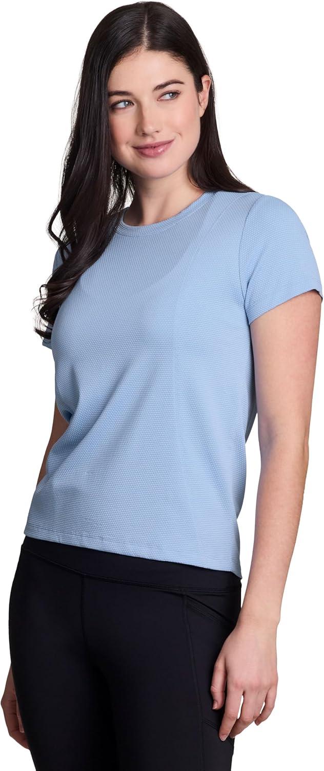 RBX Active Women’s Mesh Workout Top Short Sleeve Crewneck Quick Drying Running T-Shirt with Breathable Fabric(Tile Blue)