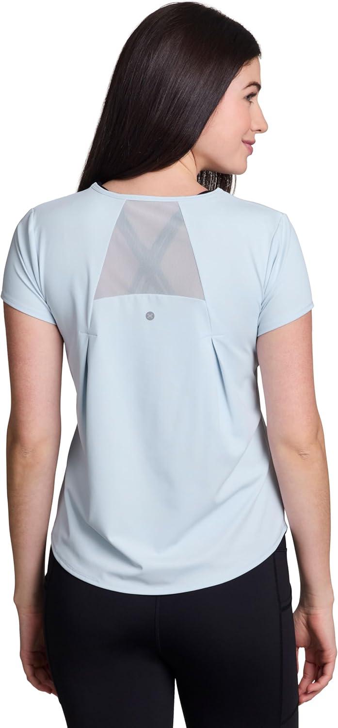 RBX Active Women’s Workout Top with Mesh Panels, Breathable Quick Drying Gym Running T-Shirt, with Plus Sizes(Blue Sky)