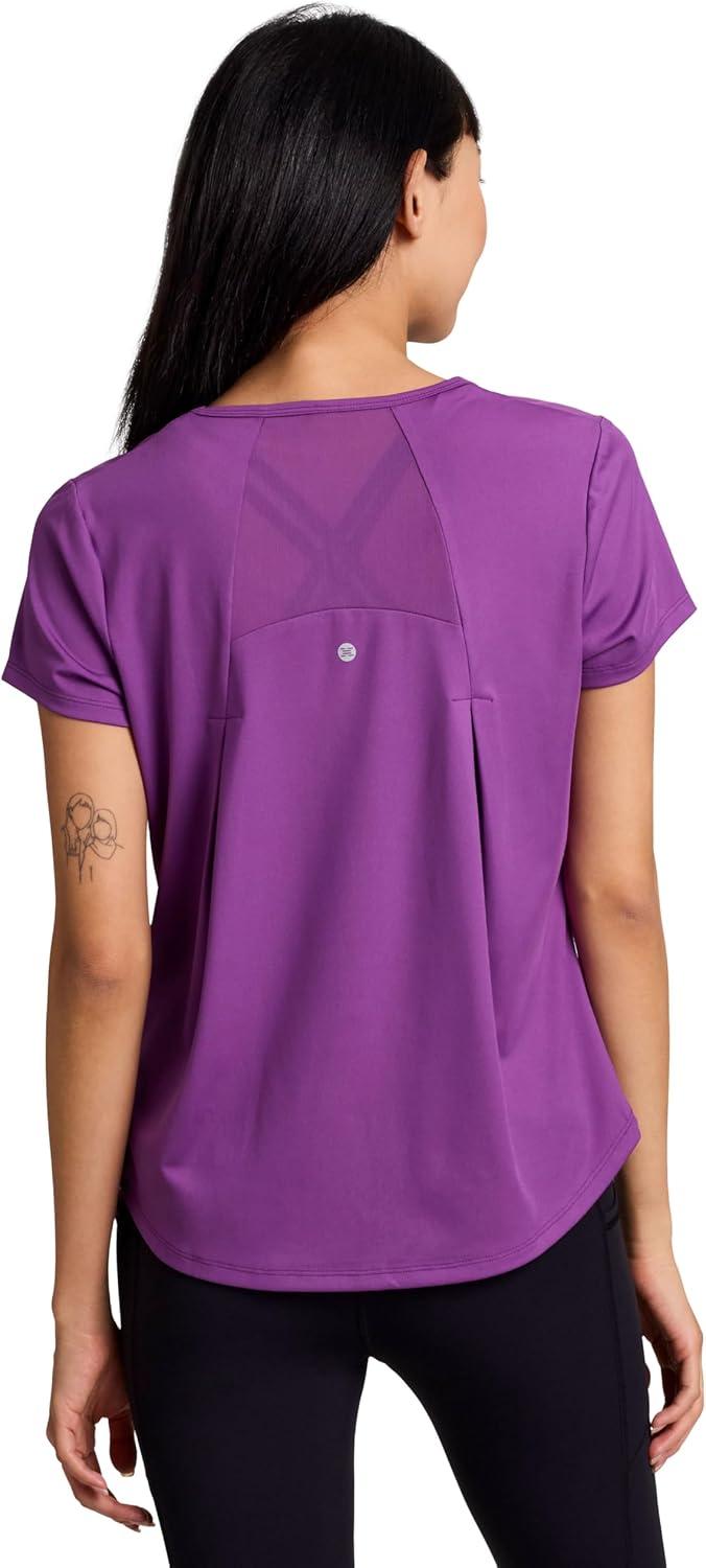 RBX Active Women’s Workout Top with Mesh Panels, Breathable Quick Drying Gym Running T-Shirt, with Plus Sizes(Violet Purple)