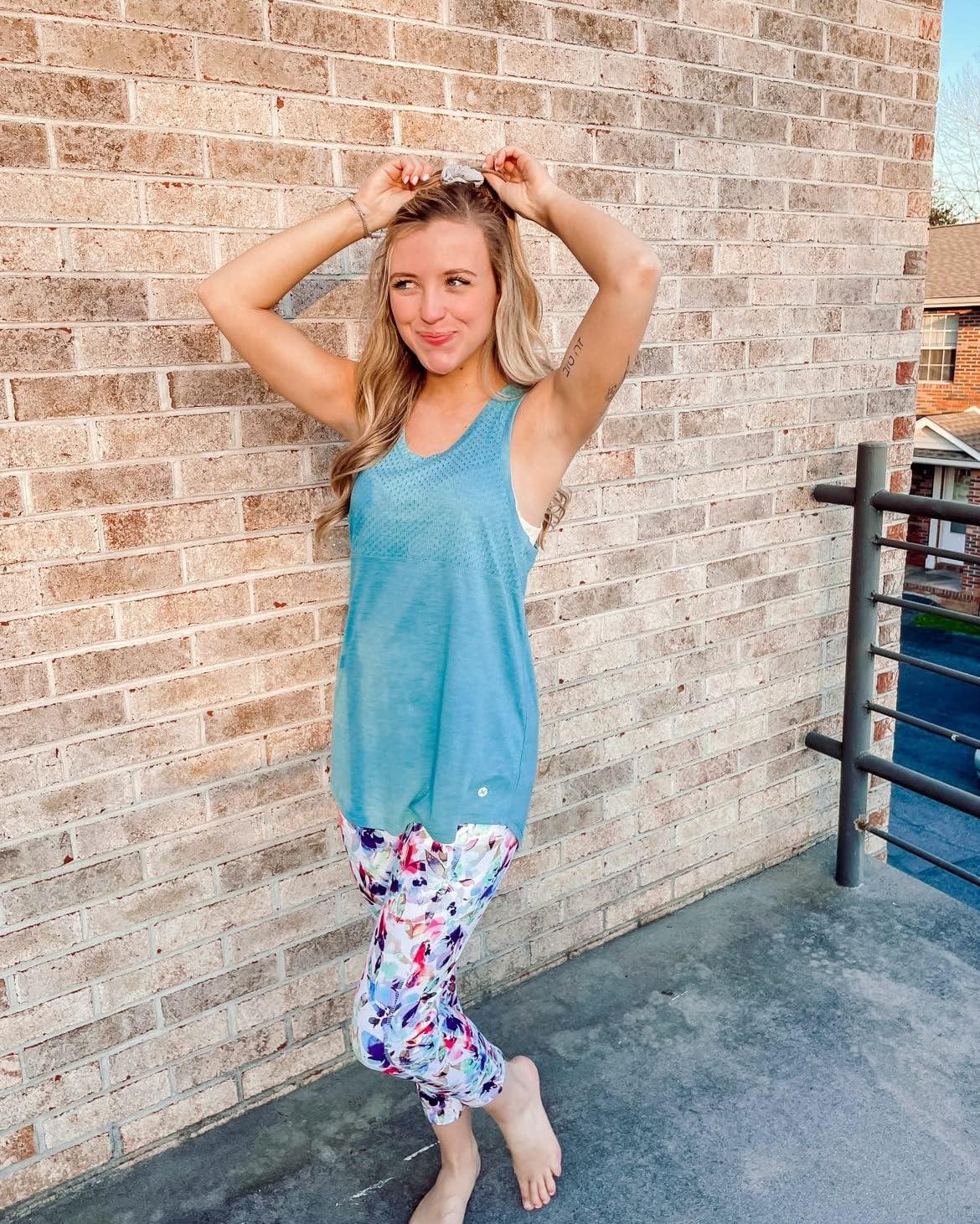 RBX Active Workout Tank Top for Women Racerback Flowy Yoga Top Fashion Detail(Blue Faience)