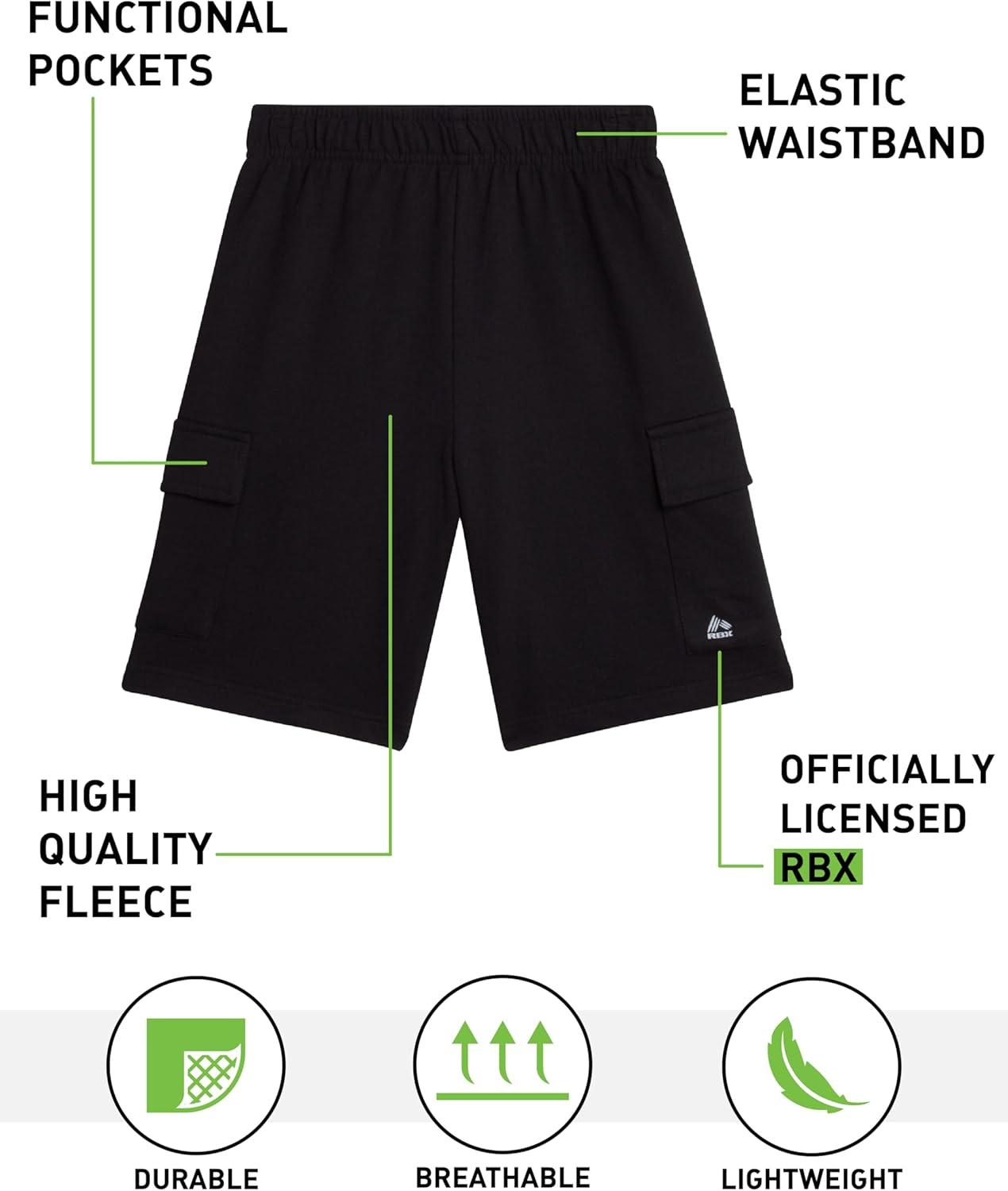 image:imageRBX Boys Active Shorts  2 Pack Breathable Performance Fleece Athletic Shorts with Functional Pockets Sizes 816BlackGrey Cargo