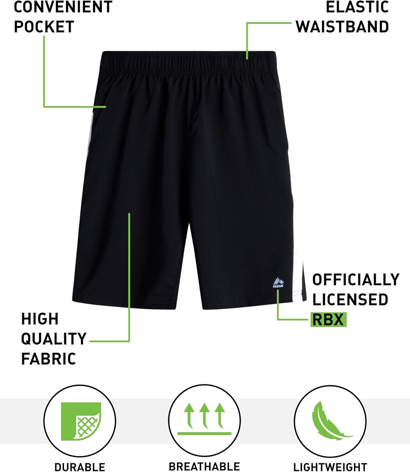 Gear up your young athlete with the RBX Boys Athletic Shorts, the go-to pair for action, comfort, and everyday adventure. These boys basketball shorts, gym shorts, and running shorts are crafted with breathable woven fabric that keeps kids cool whether they're on the court, in the gym, or hanging out after school. Made for movement, these boys athletic shorts feature an elastic waistband for a secure yet flexible fit and deep side pockets perfect for stashing essentials. From practice drills to weekend fun, these basketball shorts for boys and soccer shorts boys styles deliver durability and performance. Parents love the easy-care fabric that holds up wash after wash, while kids love how lightweight and soft these boys gym shorts feel during every game. Whether your child prefers black basketball shorts boys style or classic neutrals, there's a pair for every personality. They're a staple in any boys clothing collection – stylish, practical, and built for action. Perfect for soccer gifts for boys 8-12, football gifts for boys 8-12, or just updating your boy clothes wardrobe, these basketball shorts boys and youth basketball shorts make a winning pick. They fit comfortably across multiple sizes, including boys clothes size 6, boys clothes size 8, boys clothes size 10, and boys shorts size 10-12, with options for boys shorts size 14-16 as well. These boys' shorts are also a great choice for teen boys clothes, offering that athletic-cool look kids want. Every detail, from the high-quality stitching to the soft, quick-dry material, makes these basketball shorts kids and kids soccer shorts a must-have for active days. Whether worn as boys soccer shorts, boys black athletic shorts, or simply classic shorts for boys, they're versatile enough for school, sports, and play. For kids who never stop moving, RBX keeps up – because great clothes for boys should feel as good as they look.