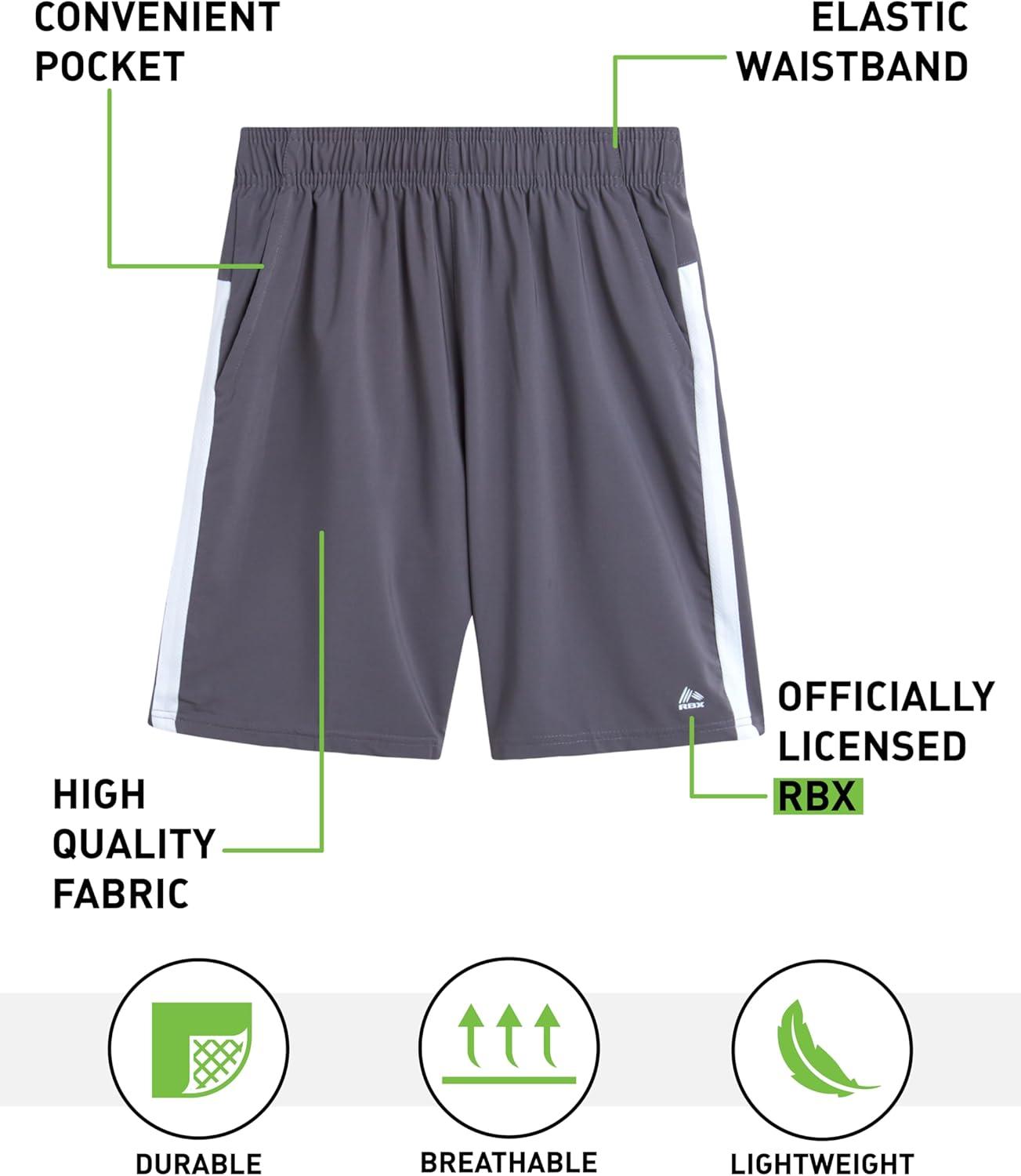 RBX Boys Athletic Shorts – Breathable Woven Boys Basketball Shorts with Pockets Lightweight Youth Kids Gym Activewear(Grey)