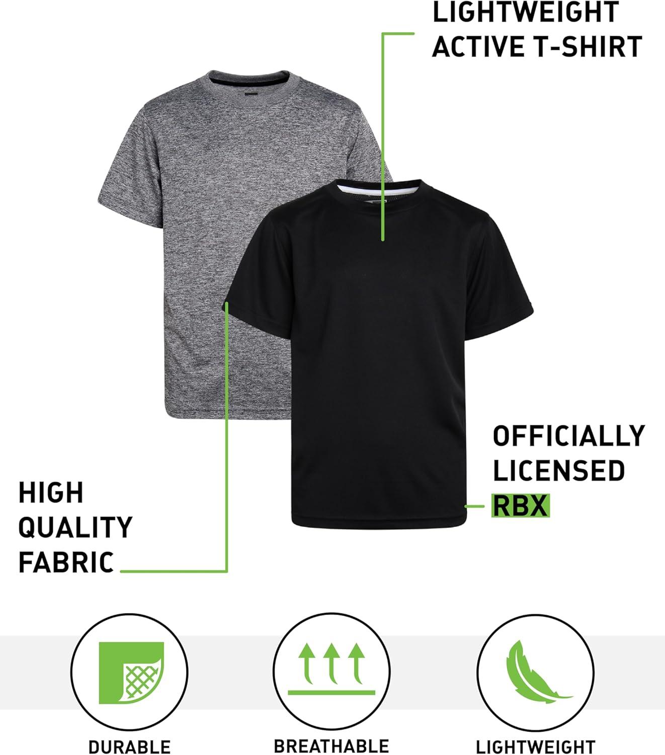 This 2 pack RBX boys t shirt delivers everyday comfort with athletic functionality. Whether it's for school, play, or weekend outings, this short sleeve essential adapts seamlessly to his routine. This kids t shirt features a classic crewneck design that never goes out of style. It's a clean and minimal look that pairs effortlessly with joggers, jeans, or athletic shorts. The streamlined construction makes it a dependable go-to for a variety of activities, offering simplicity without sacrificing function. Parents love the reliability and comfort, while kids enjoy the lightweight feel and unrestricted motion. Whether you're looking for boys tshirt size 10-12, boys tshirt size 14-16, or boys t shirts size 8, this style is available in multiple sizes to accommodate growth and preference. It easily coordinates with other wardrobe staples, making it a strong addition to any collection of t shirts for boys or youth shirts. Engineered for movement, the fabric offers a balance of softness and structure. It's a functional choice for kids who enjoy outdoor activities, team sports, or simply need a durable shirt to keep up with their high energy levels. The material allows for all-day wear without weighing him down. Looking for versatile options in boys plain t shirts or everyday boy tshirts? This design offers a no-fuss look that works in countless settings. It's a dependable staple for youth t shirts for boys who need comfortable, functional attire that still looks clean and pulled together. From after-school practice to weekend adventures, this RBX tee delivers dependable wear in sizes ranging from shirts for boys 10-12 to shirts for boys 14-16, including boys tee shirts size 10-12. Designed with kids in mind, it supports the daily pace of growing boys and stands out for its simplicity, durability, and all-day comfort.