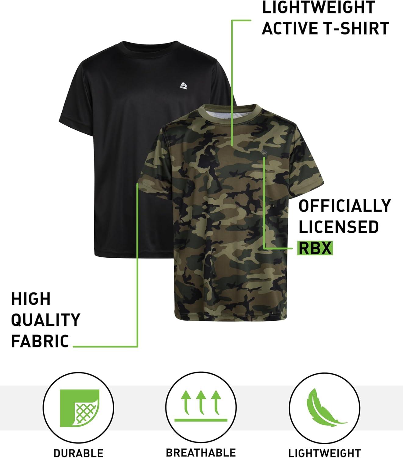 This 2 pack RBX boys t shirt delivers everyday comfort with athletic functionality. Whether it's for school, play, or weekend outings, this short sleeve essential adapts seamlessly to his routine. This kids t shirt features a classic crewneck design that never goes out of style. It's a clean and minimal look that pairs effortlessly with joggers, jeans, or athletic shorts. The streamlined construction makes it a dependable go-to for a variety of activities, offering simplicity without sacrificing function. Parents love the reliability and comfort, while kids enjoy the lightweight feel and unrestricted motion. Whether you're looking for boys tshirt size 10-12, boys tshirt size 14-16, or boys t shirts size 8, this style is available in multiple sizes to accommodate growth and preference. It easily coordinates with other wardrobe staples, making it a strong addition to any collection of t shirts for boys or youth shirts. Engineered for movement, the fabric offers a balance of softness and structure. It's a functional choice for kids who enjoy outdoor activities, team sports, or simply need a durable shirt to keep up with their high energy levels. The material allows for all-day wear without weighing him down. Looking for versatile options in boys plain t shirts or everyday boy tshirts? This design offers a no-fuss look that works in countless settings. It's a dependable staple for youth t shirts for boys who need comfortable, functional attire that still looks clean and pulled together. From after-school practice to weekend adventures, this RBX tee delivers dependable wear in sizes ranging from shirts for boys 10-12 to shirts for boys 14-16, including boys tee shirts size 10-12. Designed with kids in mind, it supports the daily pace of growing boys and stands out for its simplicity, durability, and all-day comfort.