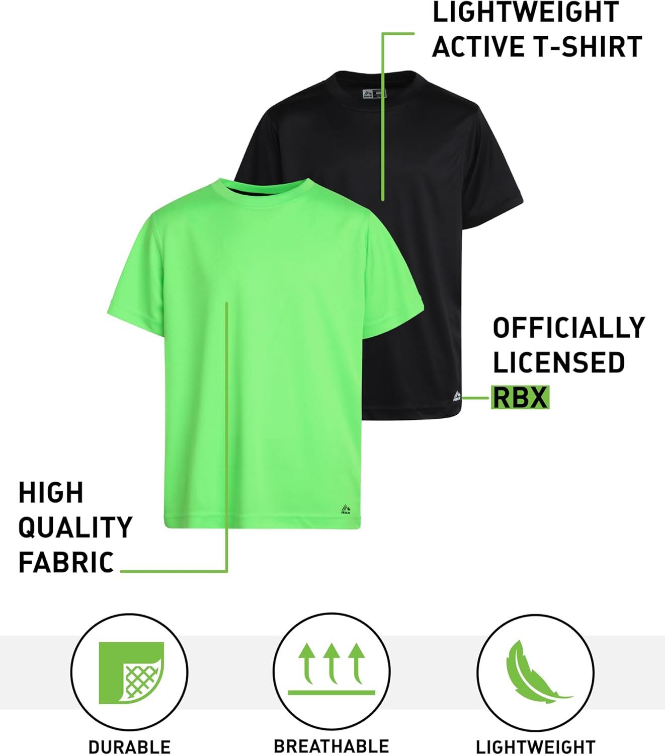RBX Boys Tshirts – 2 Pack Dry Fit Crewneck Short Sleeve Boys Athletic Shirts Kids Activewear Sports (Sizes: 4-16)(Lime/Black)