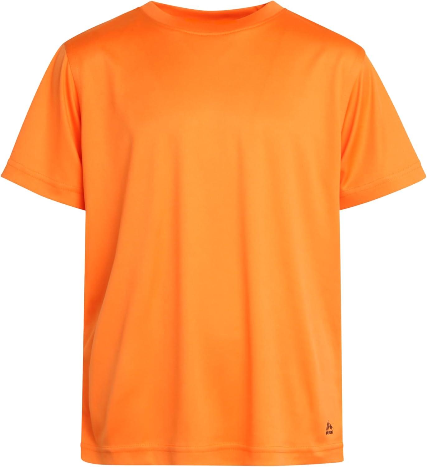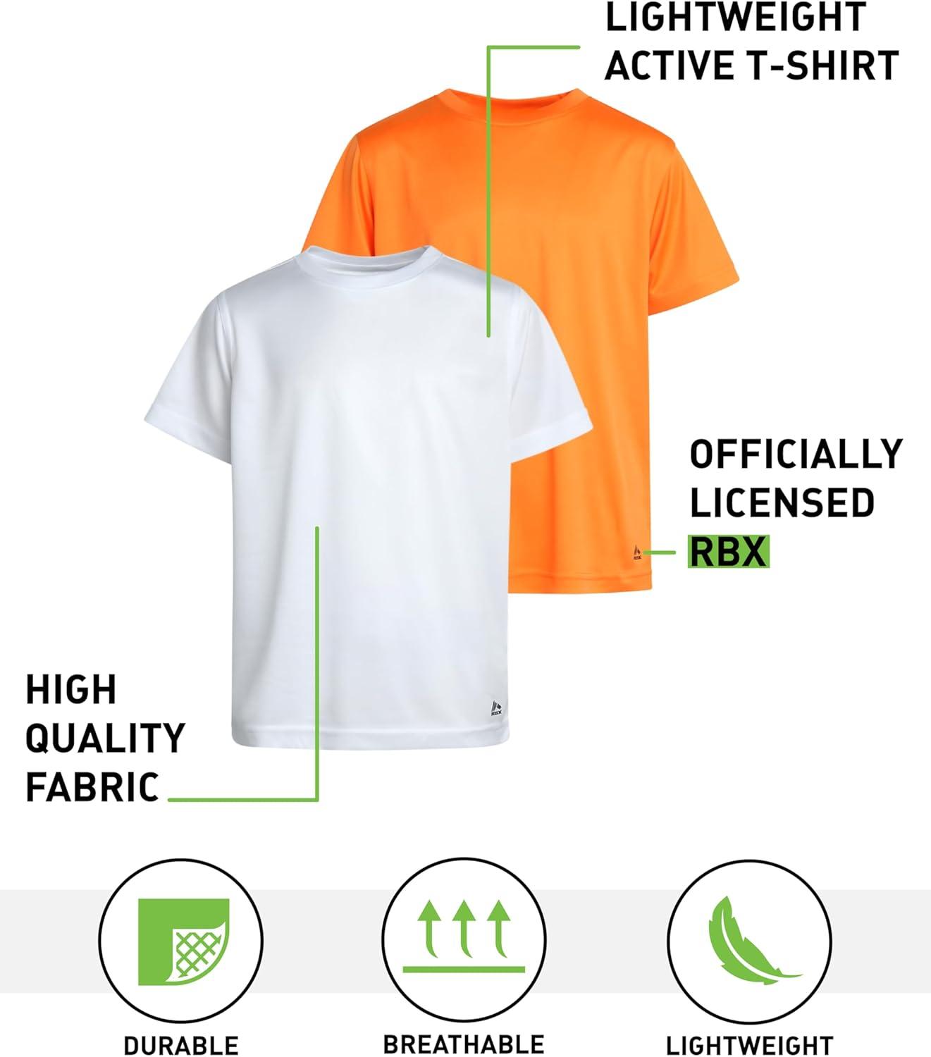 RBX Boys Tshirts – 2 Pack Dry Fit Crewneck Short Sleeve Boys Athletic Shirts Kids Activewear Sports (Sizes: 4-16)(Orange/White)