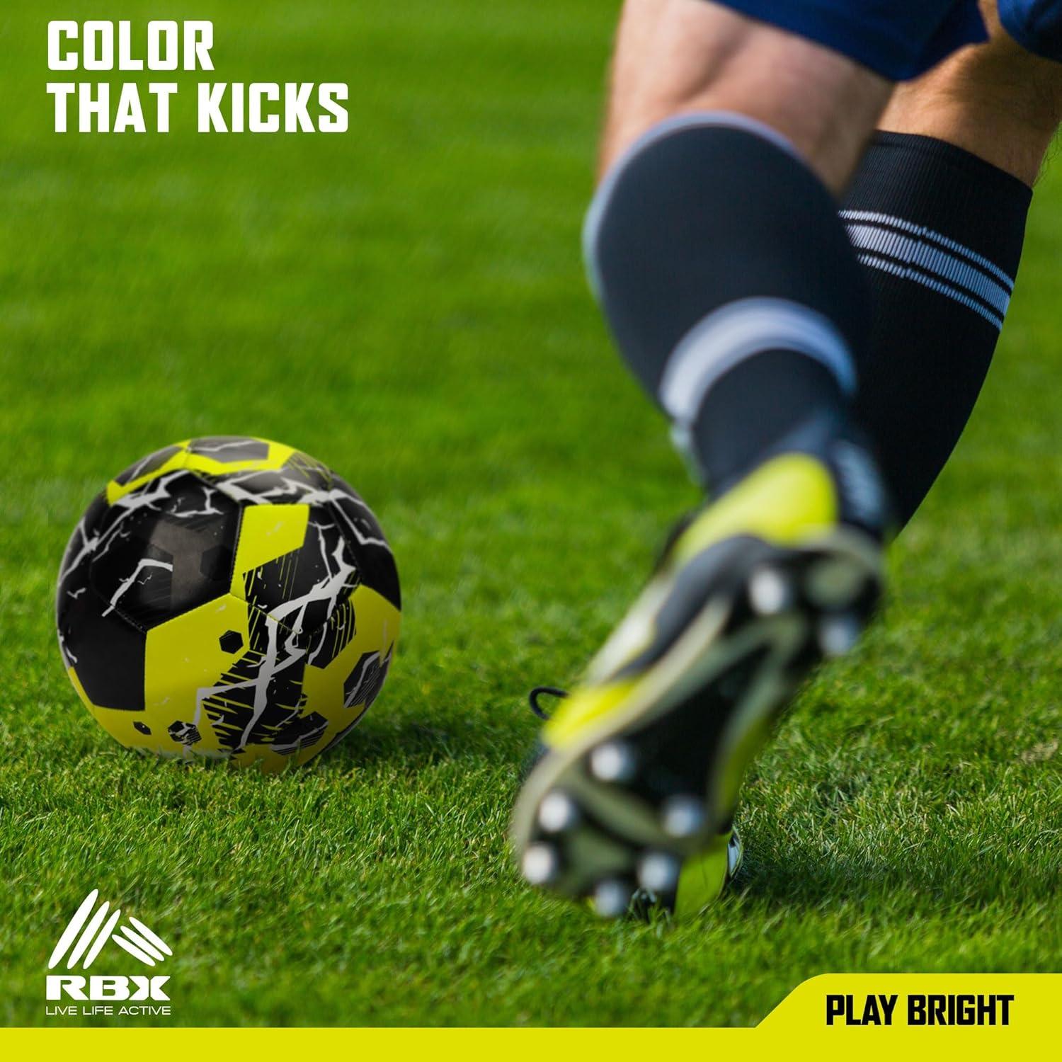 RBX Size 5 Soccer Ball, Durable 32 Machine-Stitched Panel Construction, Superior Air Retention, All Weather Design, High Contrast Graphics(Volt/Black)